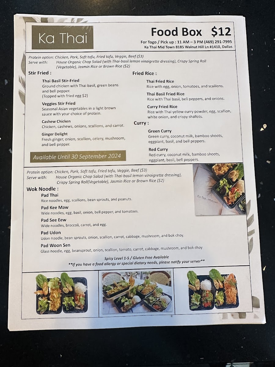 Introducing Ka Thai Midtown, a culinary gem nestled in Dallas, TX, at 8185 Walnut Hill Ln. This vibrant Thai restaurant captures the essence of authentic Thai cuisine through its thoughtfully curated menu. Guests rave about the crispy spring rolls, served alongside a captivating dipping sauce that elevates the experience. The Pad Thai shines with a perfect balance of tangy sweetness and gentle spice, while the Pineapple Beef Fried Rice offers a delightful tropical twist with its tender, juicy beef.